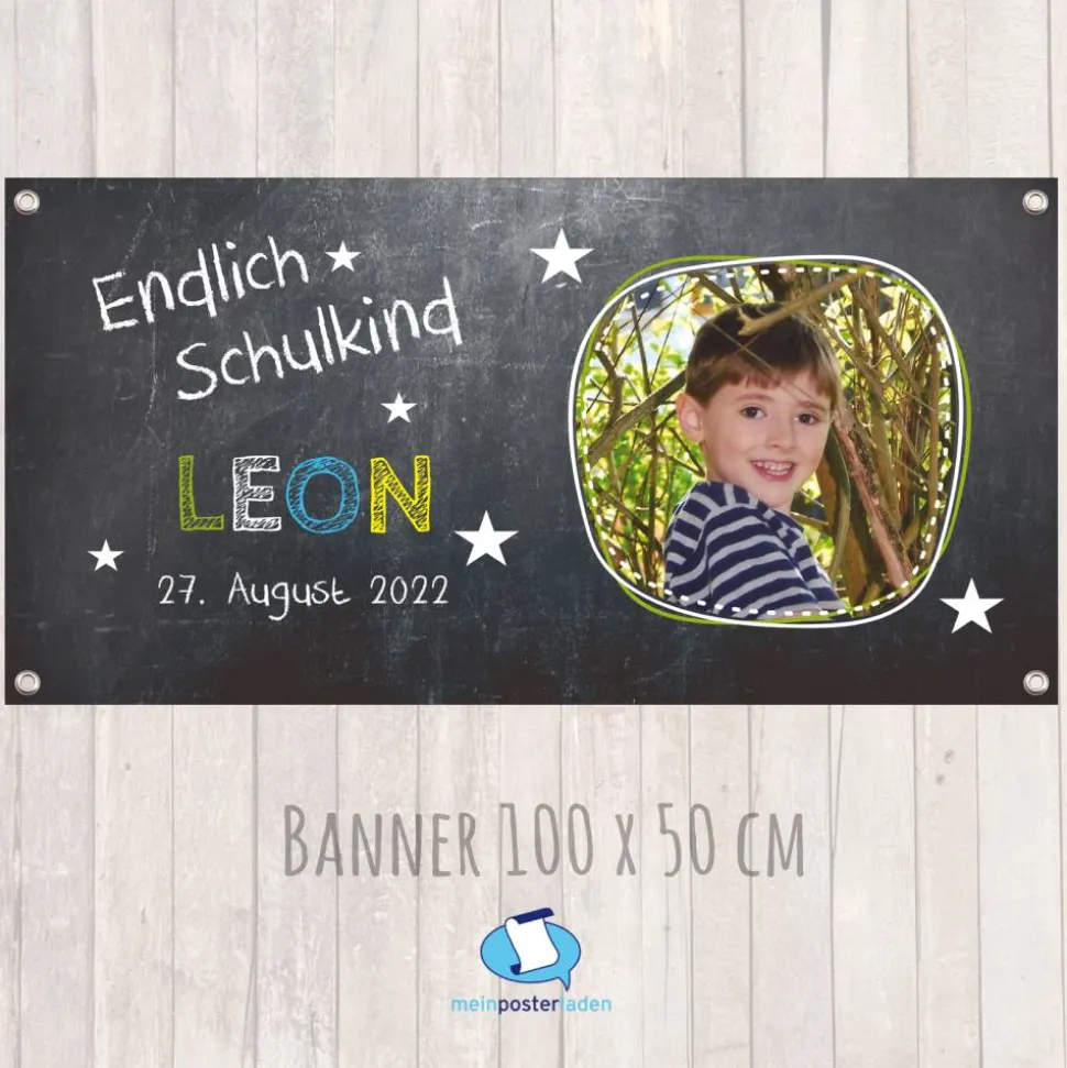 Banner zur Einschulung 100 x 50 cm – mit Foto personalisierbar | Tafeloptik Sternchen