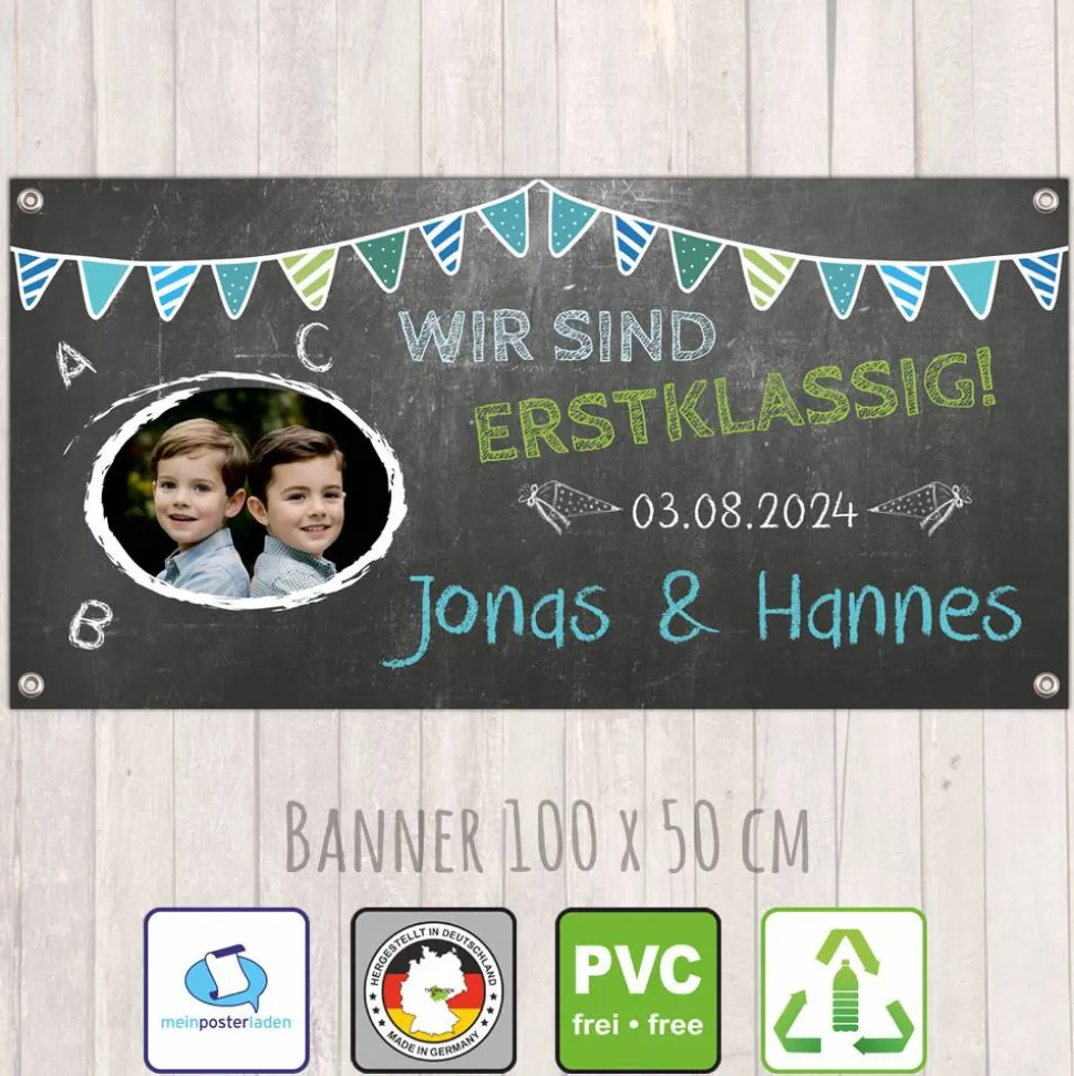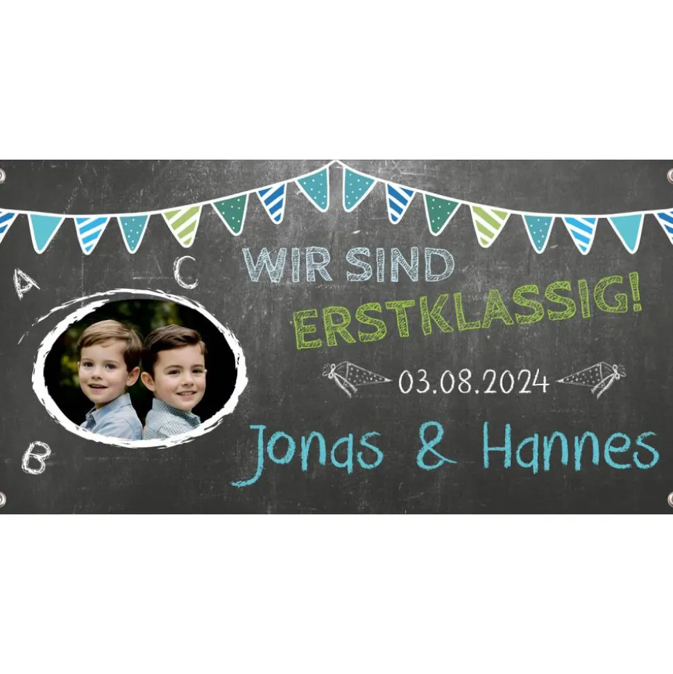 Bedrucktes und personalisierbares Banner zum Schulanfang für Zwillinge (wenn du für mehr Kinder einen Banner möchtest, schreibe mir vor dem Kauf bitte eine Nachricht, dann gestalte ich dir gerne ein passendes Banner)