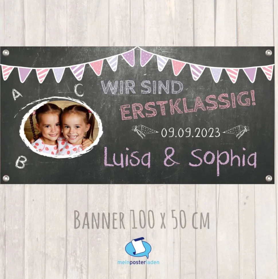 Bedrucktes und personalisierbares Banner zum Schulanfang für Zwillinge (wenn du für mehr Kinder einen Banner möchtest, schreibe mir vor dem Kauf bitte eine Nachricht, dann gestalte ich dir gerne ein passendes Banner)