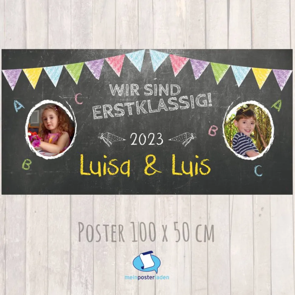 Bedrucktes und personalisierbares Banner zum Schulanfang für Zwillinge (wenn du für mehr Kinder einen Banner möchtest, schreibe mir vor dem Kauf bitte eine Nachricht, dann gestalte ich dir gerne ein passendes Banner)