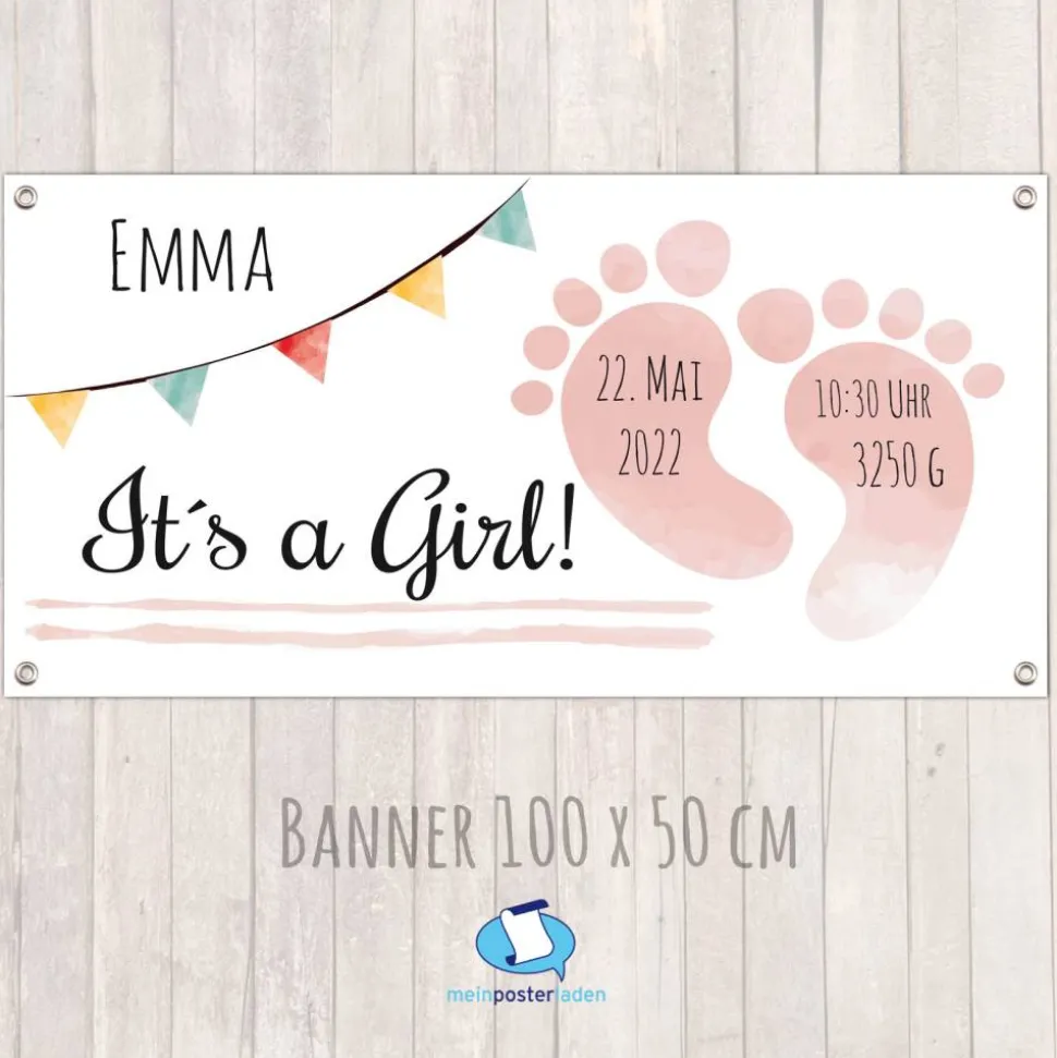 Bedrucktes und personalisierbares Banner für Babyparty, Baby Shower, Gender Reveal Party und Geburt,