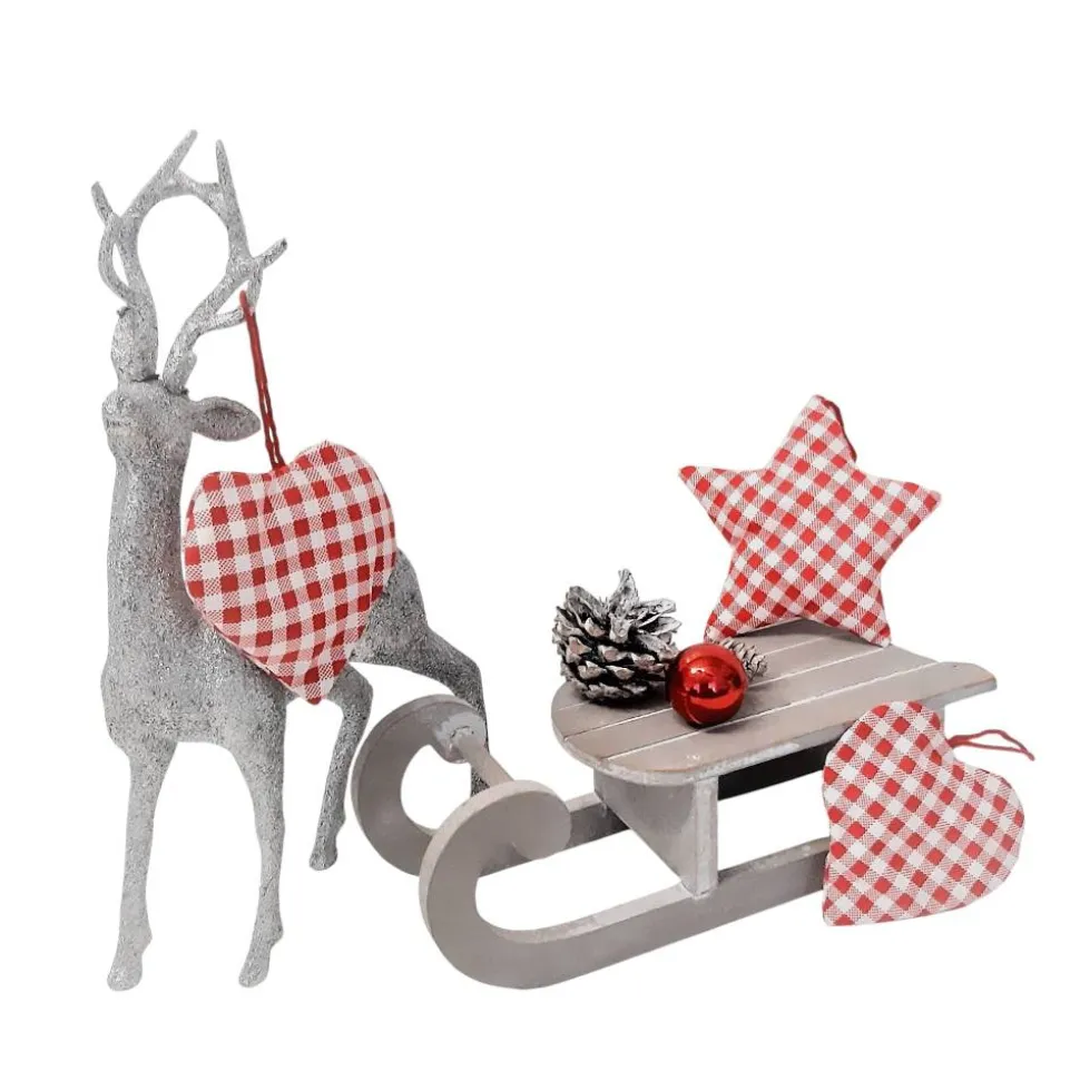 Baumschmuck 3er Set, Stern und Herzen rot kariert
