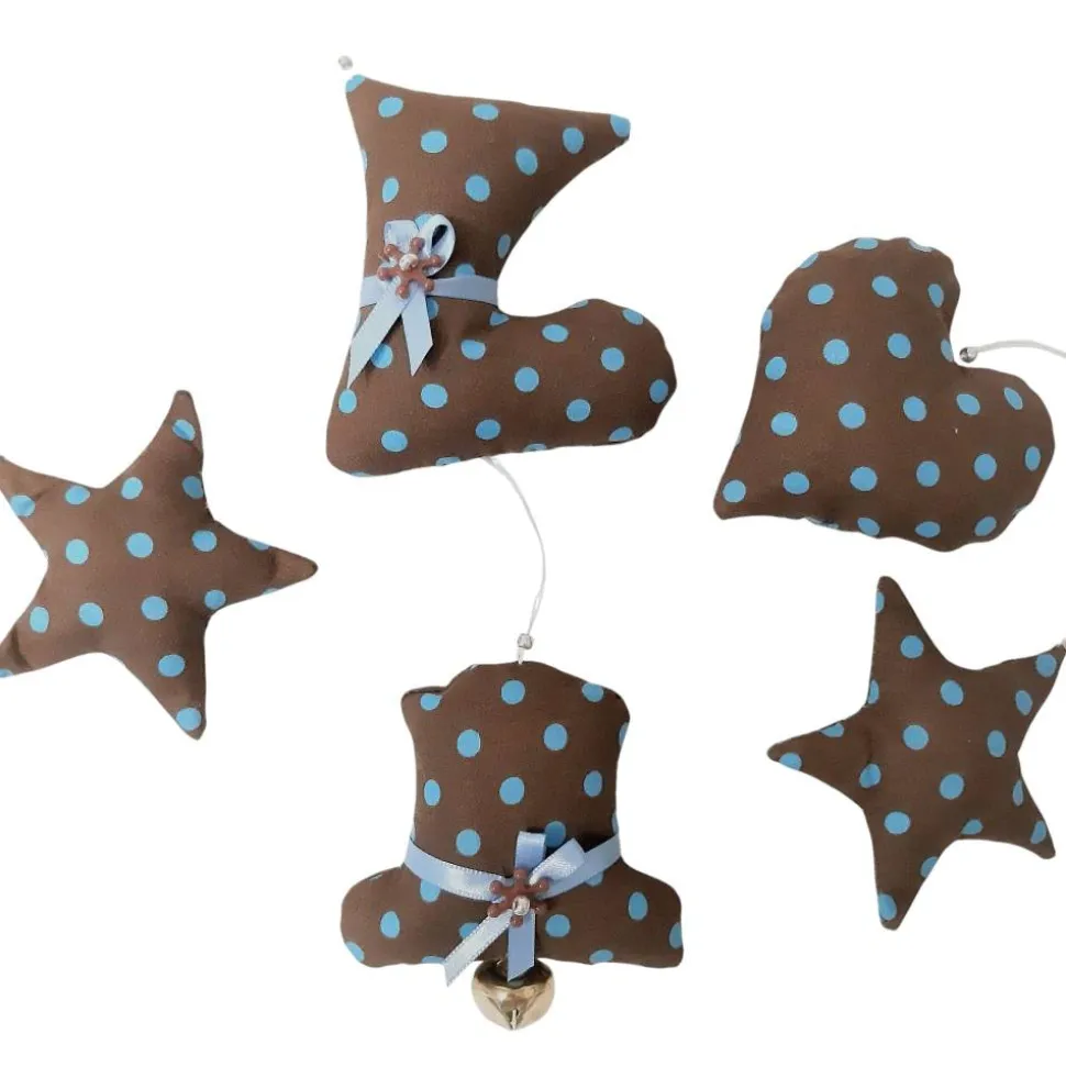 5er Set Christbaumschmuck aus Baumwolle genäht und mit Füllwatte aus Polyester befüllt. Auch geeignet als Geschenkanhänger oder auch als Weihnachtsdeko.