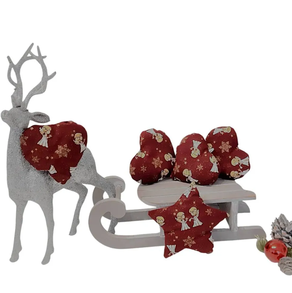 5er Set Christbaumschmuck aus Baumwolle genäht und mit Füllwatte aus Polyester befüllt. Auch geeignet als Geschenkanhänger oder auch als Weihnachtsdeko.