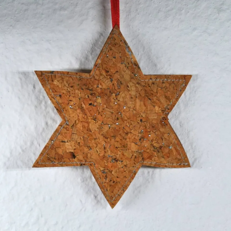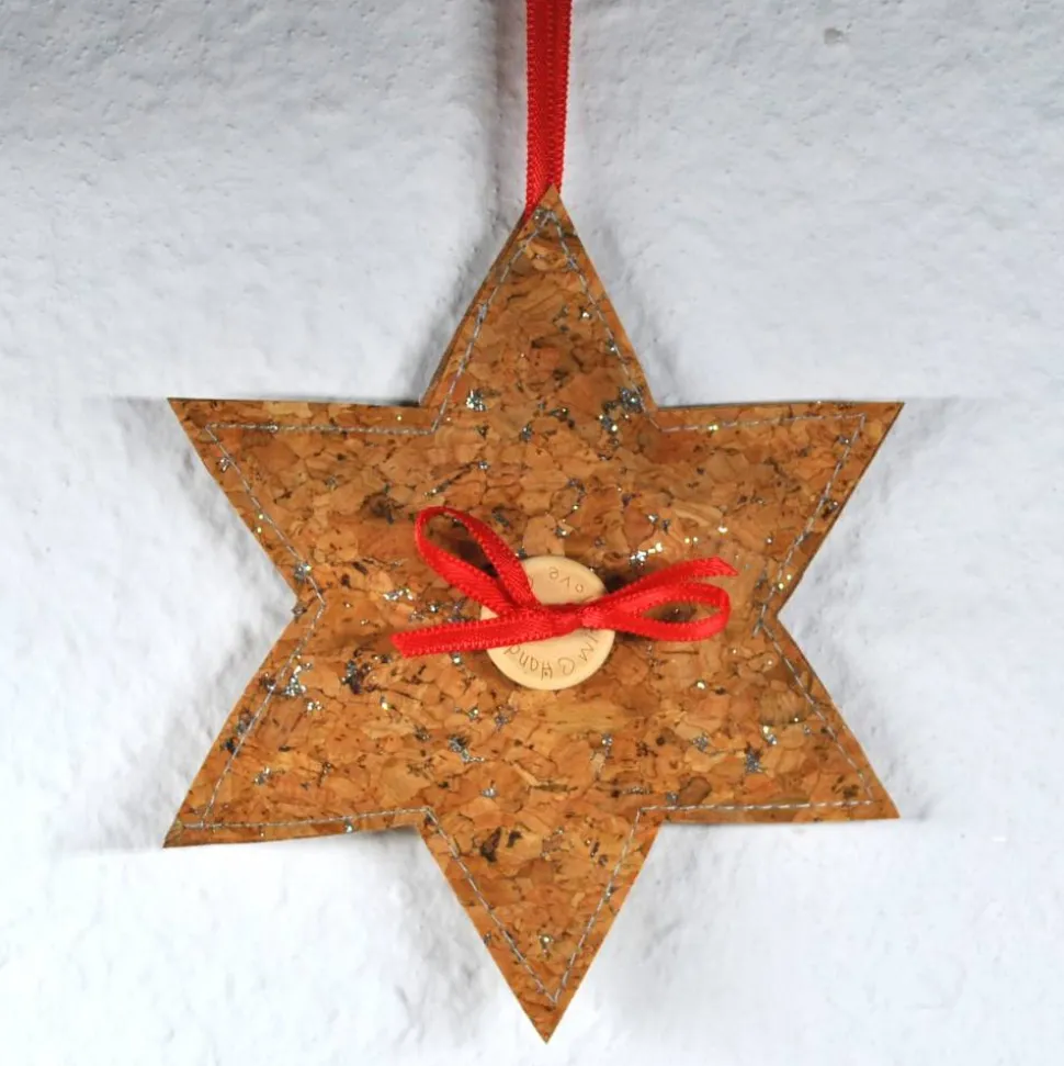 Entdecke einen einzigartigen Baumschmuck, Geschenkanhänger und ein kleines Mitbringsel – den liebevoll gefertigten Stern aus Korkstoff mit Glitzer!