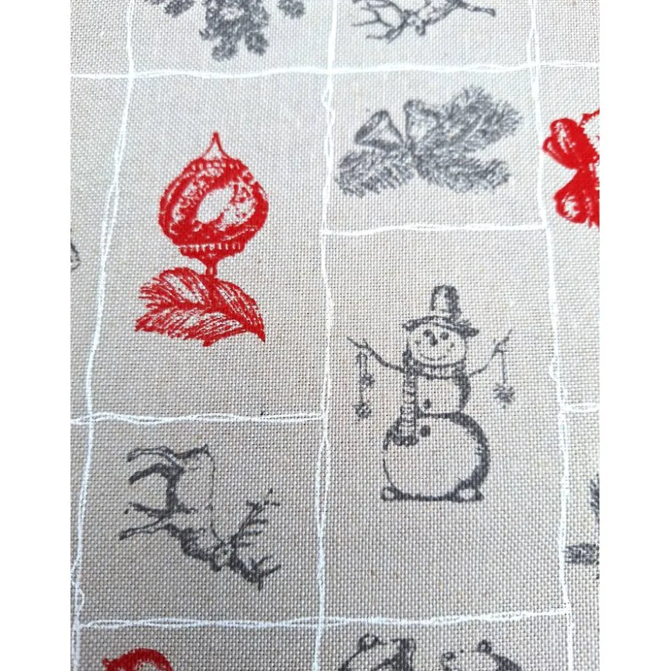 Wunderschöner Baumwollstoff mit Weihnachts und Wintermotiven in grau, rot, weiß bedruckt.