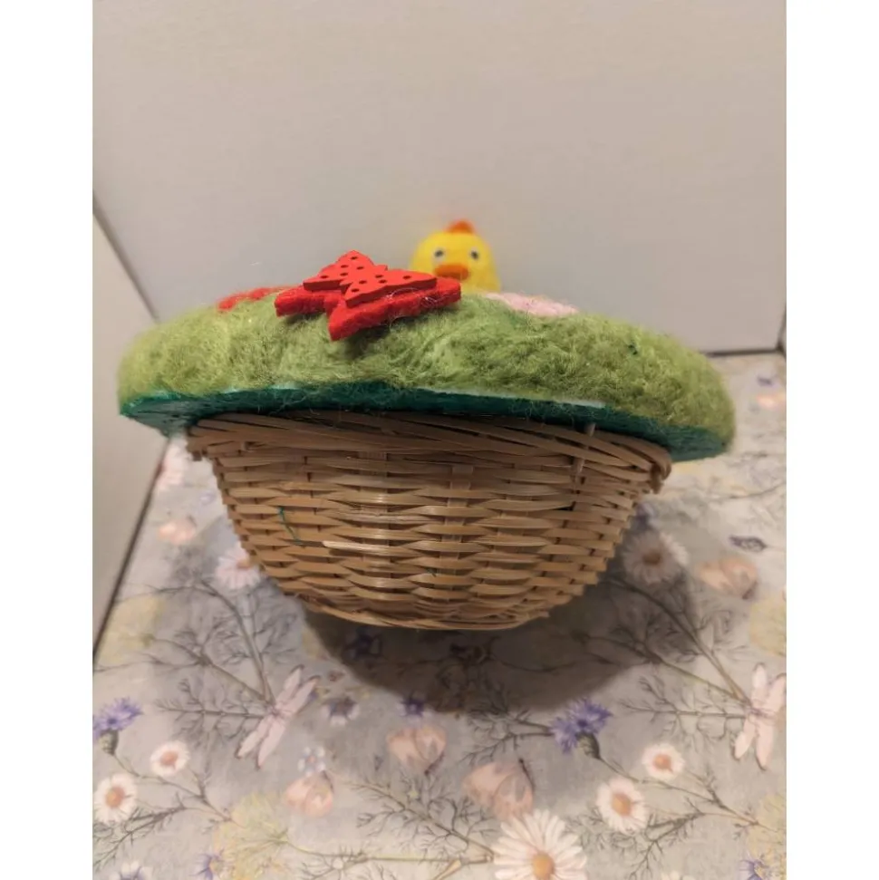 Der Durchmesser des Körbchens beträgt ca.10 cm, das Filzküken ist ca.5 cm groß.