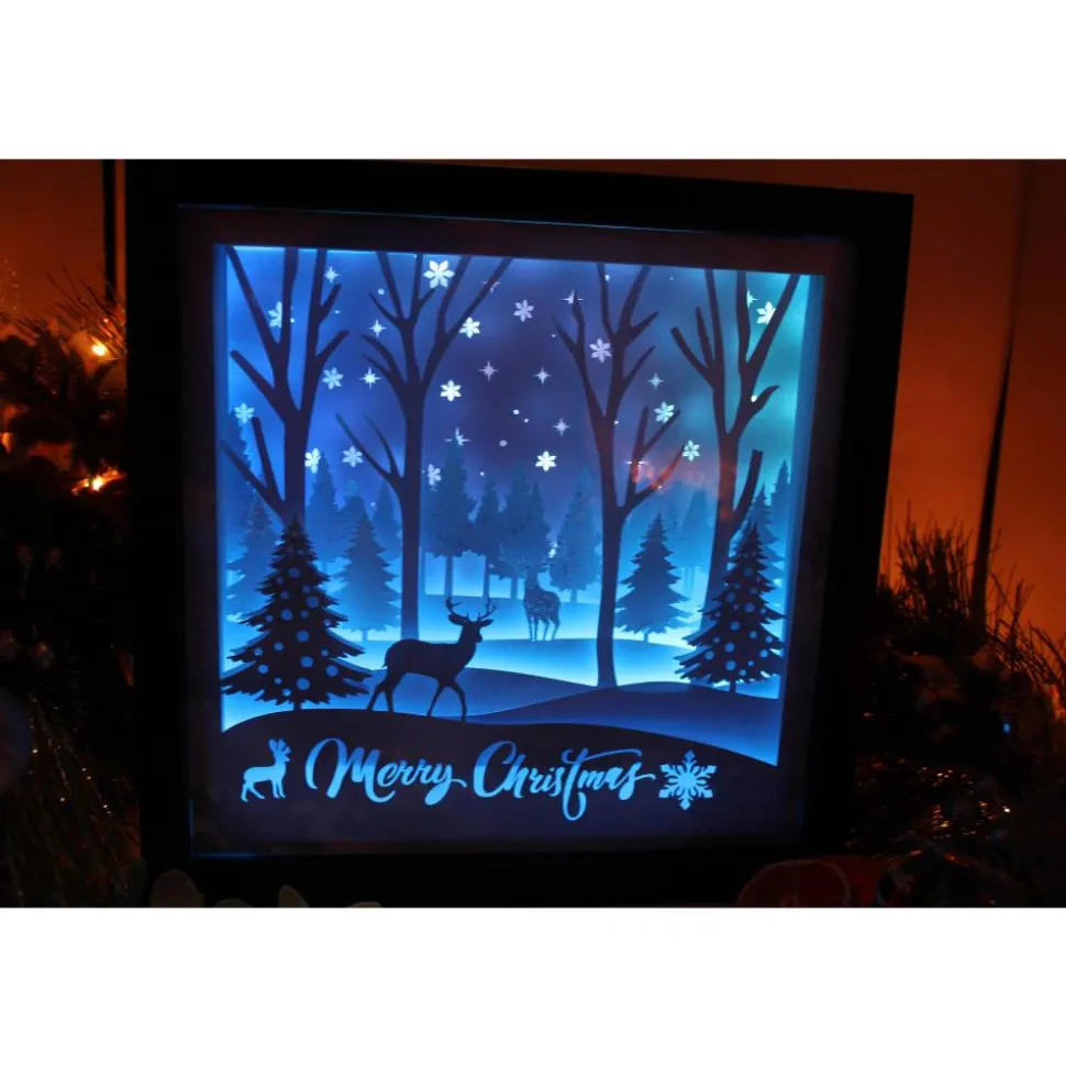 Das Motiv wurde aus mehreren Lagen stabilen Cardstock zusammengesetzt, die Led Beleuchtung wahlweise Farbwechsel oder einzelne Farben runden das Bild perfekt ab. Sie können zwischen 12 Farben wählen oder 4 Farbprogramme indem die Farben gemixt werden, auch die Helligkeit ist regulierbar. Das Licht lässt sich einfach per Fernbedienung An und Ausschalten. Der Led Lichterstripe wird per Strom betrieben.
