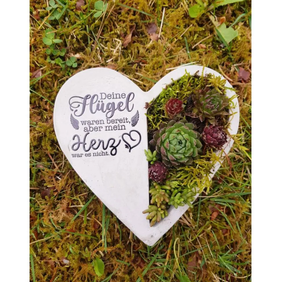 Materialien: Herz aus Gartenbeton, Sempervivum-Arten