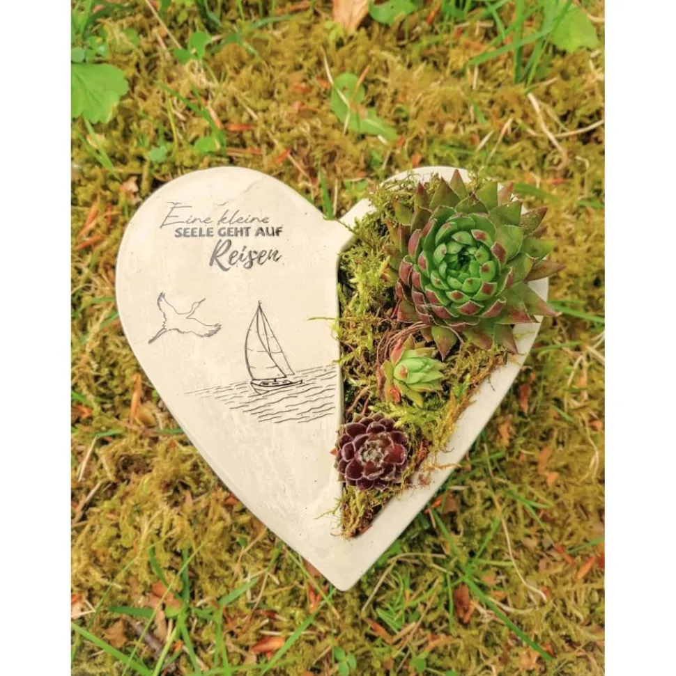 Materialien: Herz aus Gartenbeton, Sempervivum-Arten
