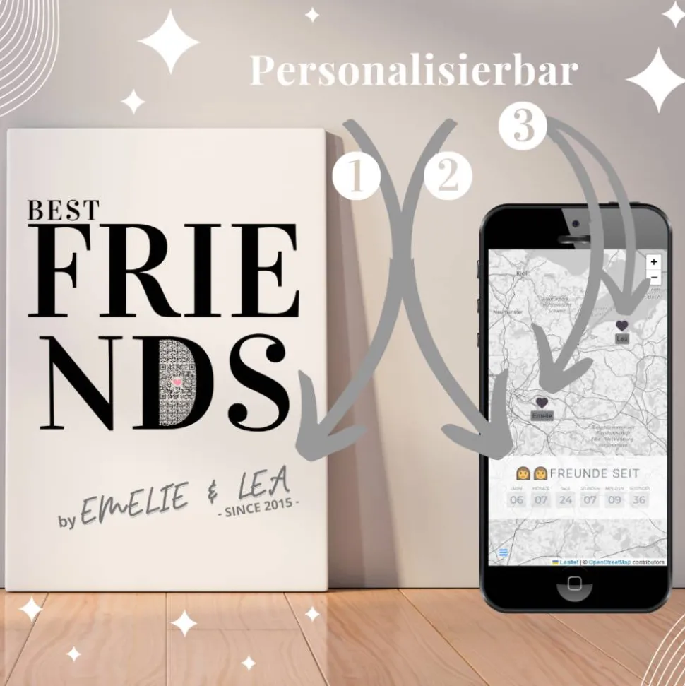 ❤️️ Ihr sucht ein einzigartiges Geschenk für eure(n) beste(n) Freund(in)? Als personalisiertes Geschenk zur Hochzeit, als Abschiedsgeschenk zum Umzug, oder als einzigartiges Geschenkidee zum Geburtstag eurer/eures BFF.