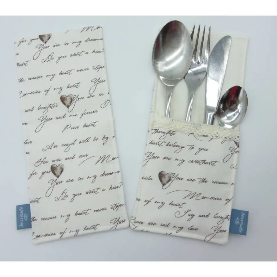 Diese Tasche bietet Platz für 4 Besteckteile und ist eine Zierde für jede Tafel, auch für die Hochzeitstafel.