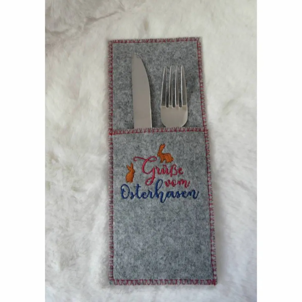Verleihe deinem Ostertisch einen zauberhaften Look! Mit diesen handgemachten Bestecktaschen im 4er Set gestaltest du eine festliche und stilvolle Ostertafel. Jede Tasche ist mit liebevoller Stickerei versehen und sorgt für einen besonderen Akzent.