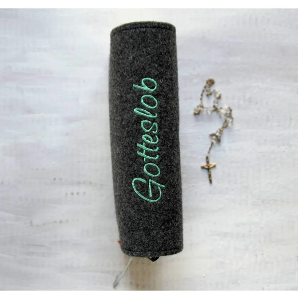 Im Gegensatz zu anderen Produkten verwende ich nicht einfach nur Folie, sondern besticke die Gotteslobhülle mit hochwertigem Stickgarn. Dadurch ist sie nicht nur schön farbenfroh, sondern auch sehr robust und langlebig.