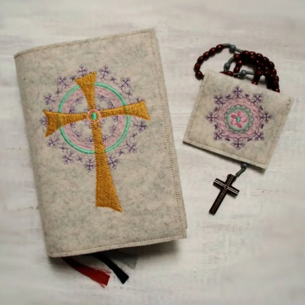 Bestickte Gotteslobhülle aus Filz *Kreuz mit Ornamente *individuell angefertigt
