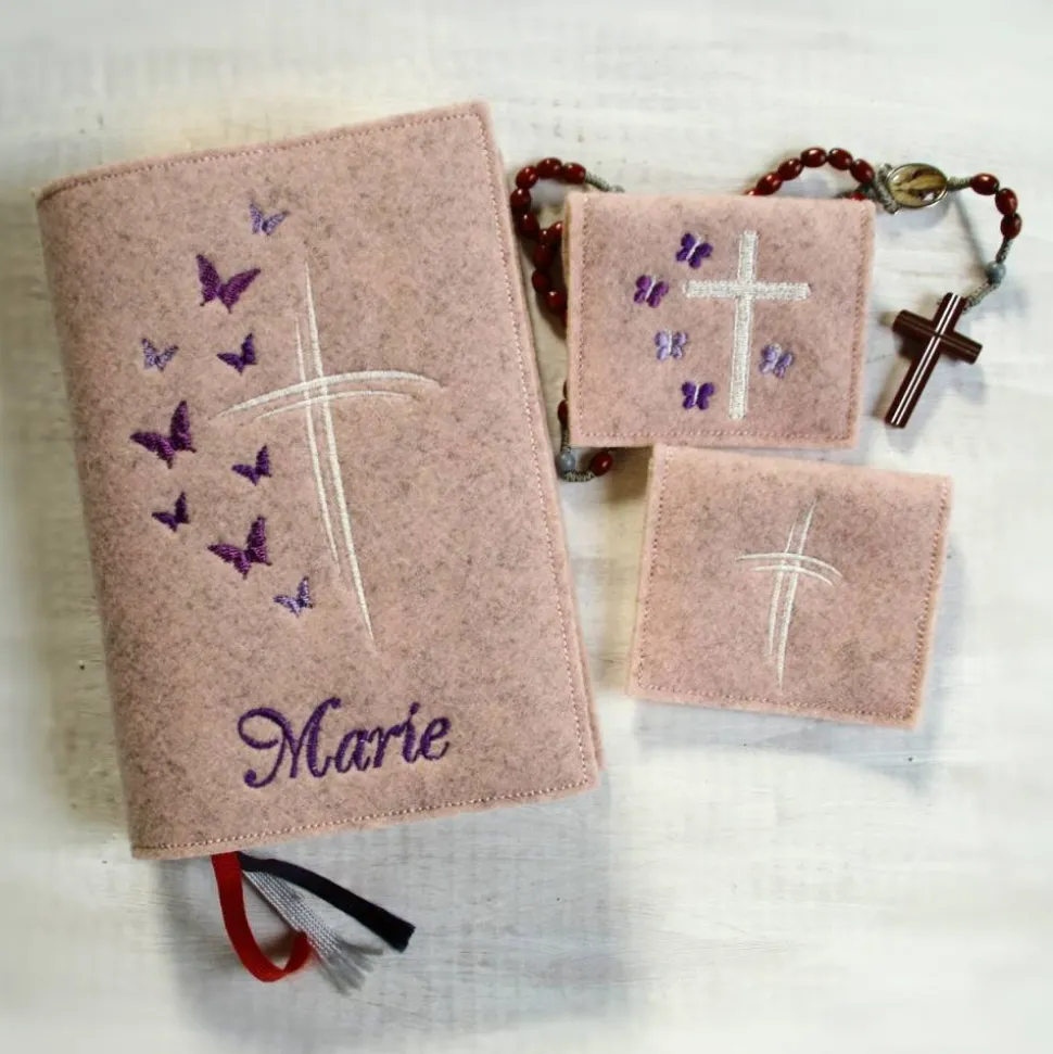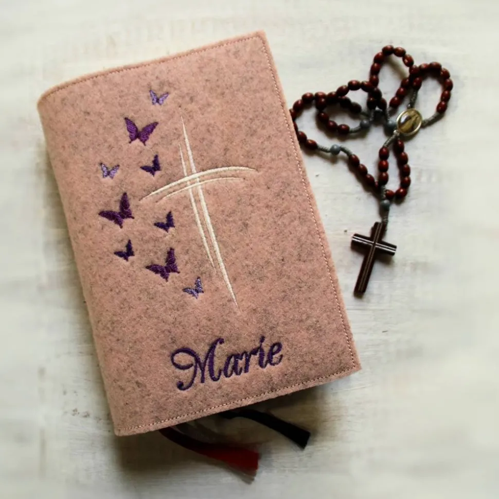 Bestickte Gotteslobhülle aus Filz *Kreuz mit Schmetterlinge *individuell angefertigt
