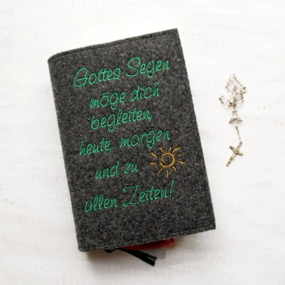 Bestickte Gotteslobhülle aus Filz *Spruch „Gottes Segen“ *individuell angefertigt