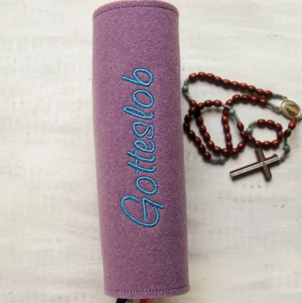 Im Gegensatz zu anderen Produkten verwende ich nicht einfach nur Folie, sondern besticke die Gotteslobhülle mit hochwertigem Stickgarn. Dadurch ist sie nicht nur schön farbenfroh, sondern auch sehr robust und langlebig.