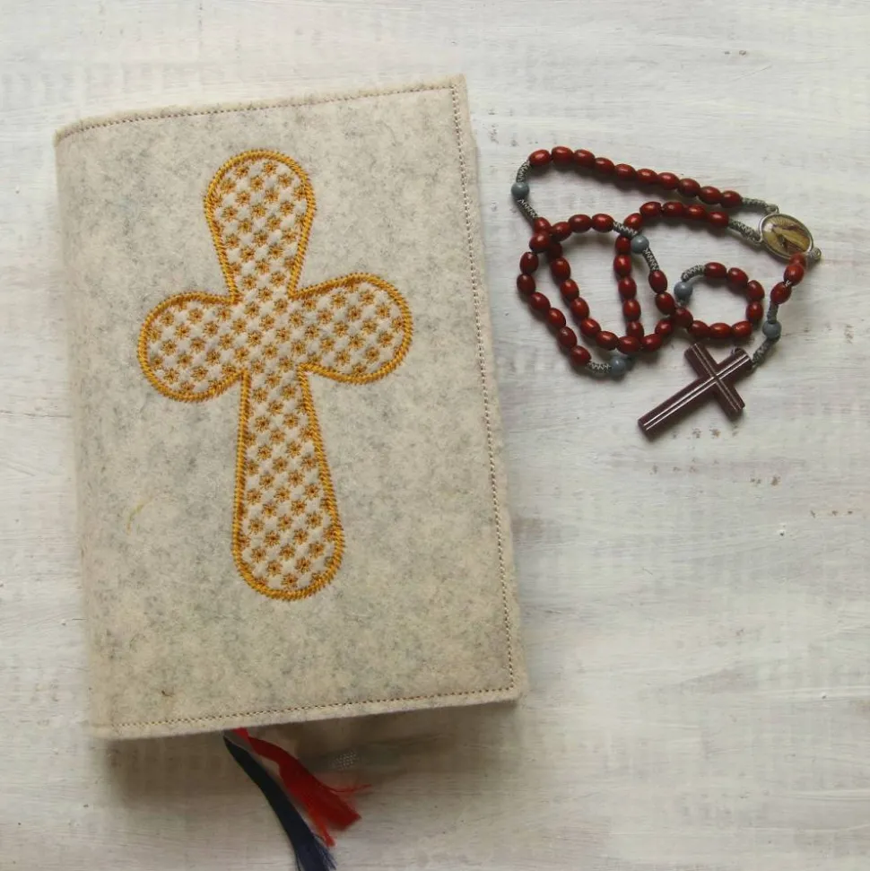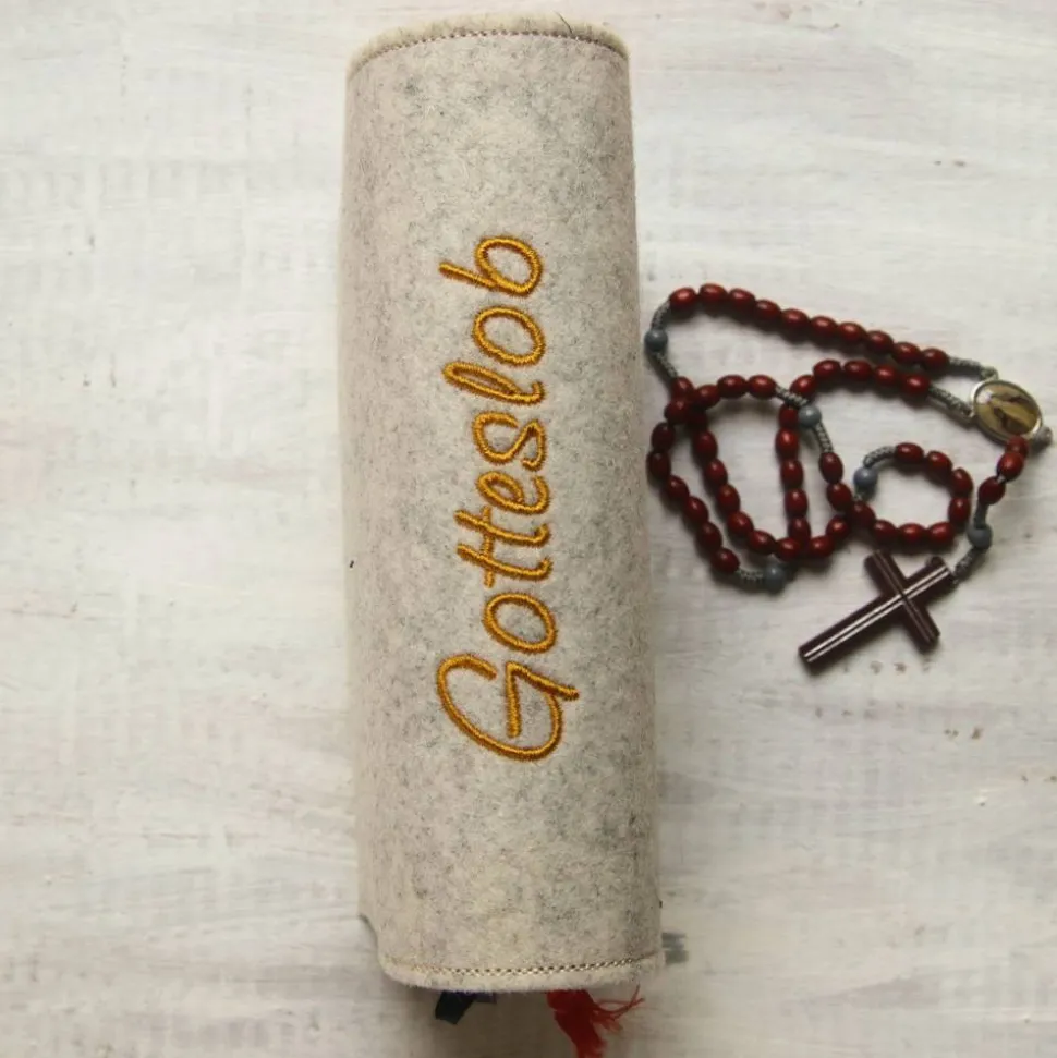 Im Gegensatz zu anderen Produkten verwende ich nicht einfach nur Folie, sondern besticke die Gotteslobhülle mit hochwertigem Stickgarn. Dadurch ist sie nicht nur schön farbenfroh, sondern auch sehr robust und langlebig.