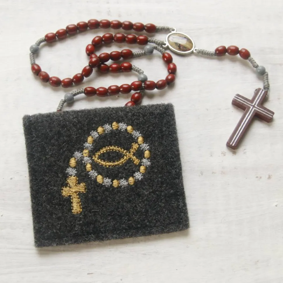 Im Gegensatz zu anderen Produkten verwende ich nicht einfach nur Folie, sondern besticke die Rosenkranztasche mit hochwertigem Stickgarn. Dadurch ist sie nicht nur schön farbenfroh, sondern auch sehr robust und langlebig.
