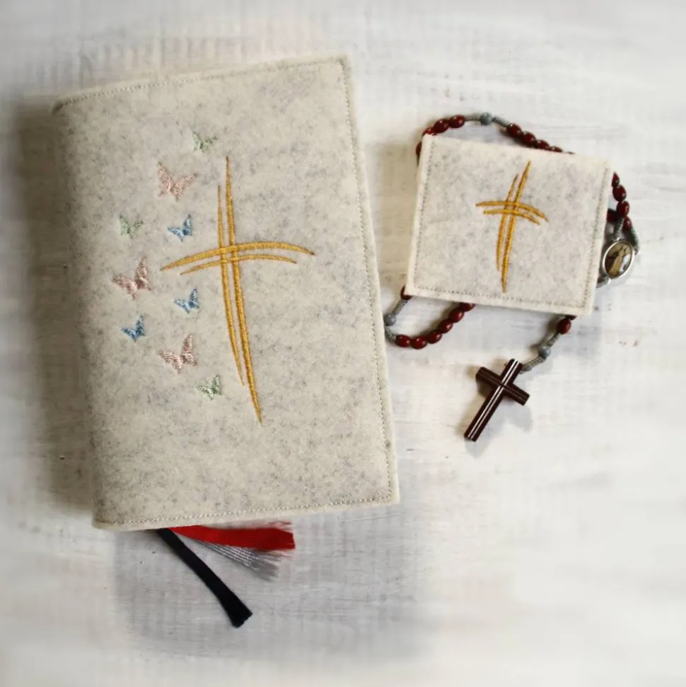 Bestickte Rosenkranztasche aus Filz *Kreuzchen *individuell angefertigt