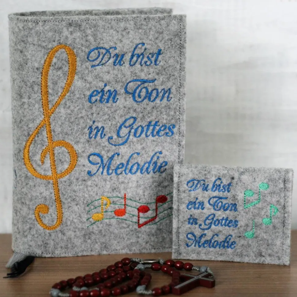 Bestickte Rosenkranztasche aus Filz *Motiv Du bist ein Ton in Gottes Melodie 2 *individuell angefertigt