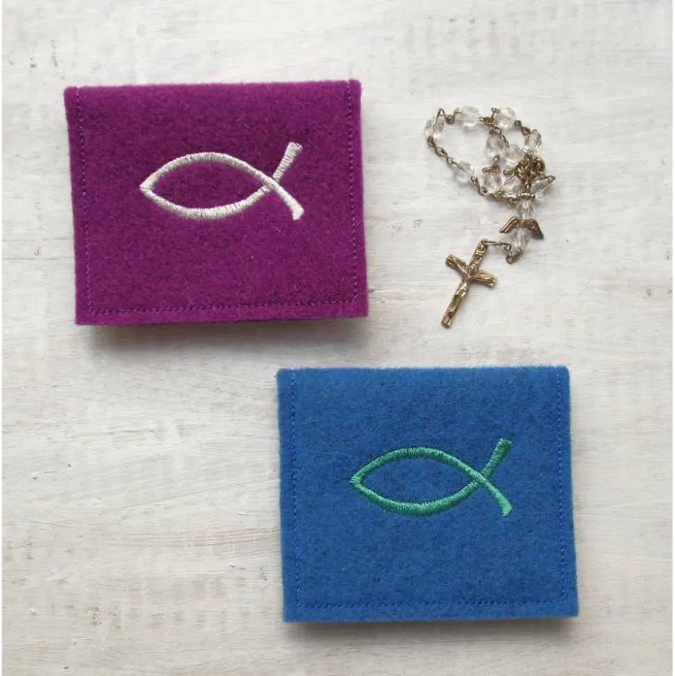 Bestickte Rosenkranztasche aus Filz *Motiv Fisch *individuell angefertigt