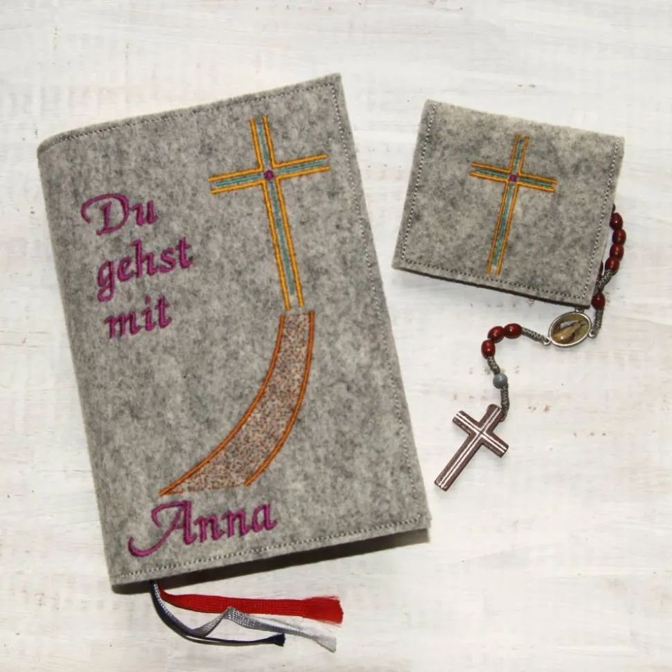 Bestickte Rosenkranztasche aus Filz *Motiv Kreuz mit Stein *individuell angefertigt
