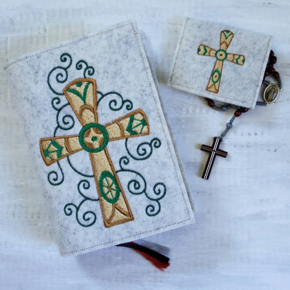 Bestickte Rosenkranztasche aus Filz *Motiv Kreuz unterteilt *individuell angefertigt