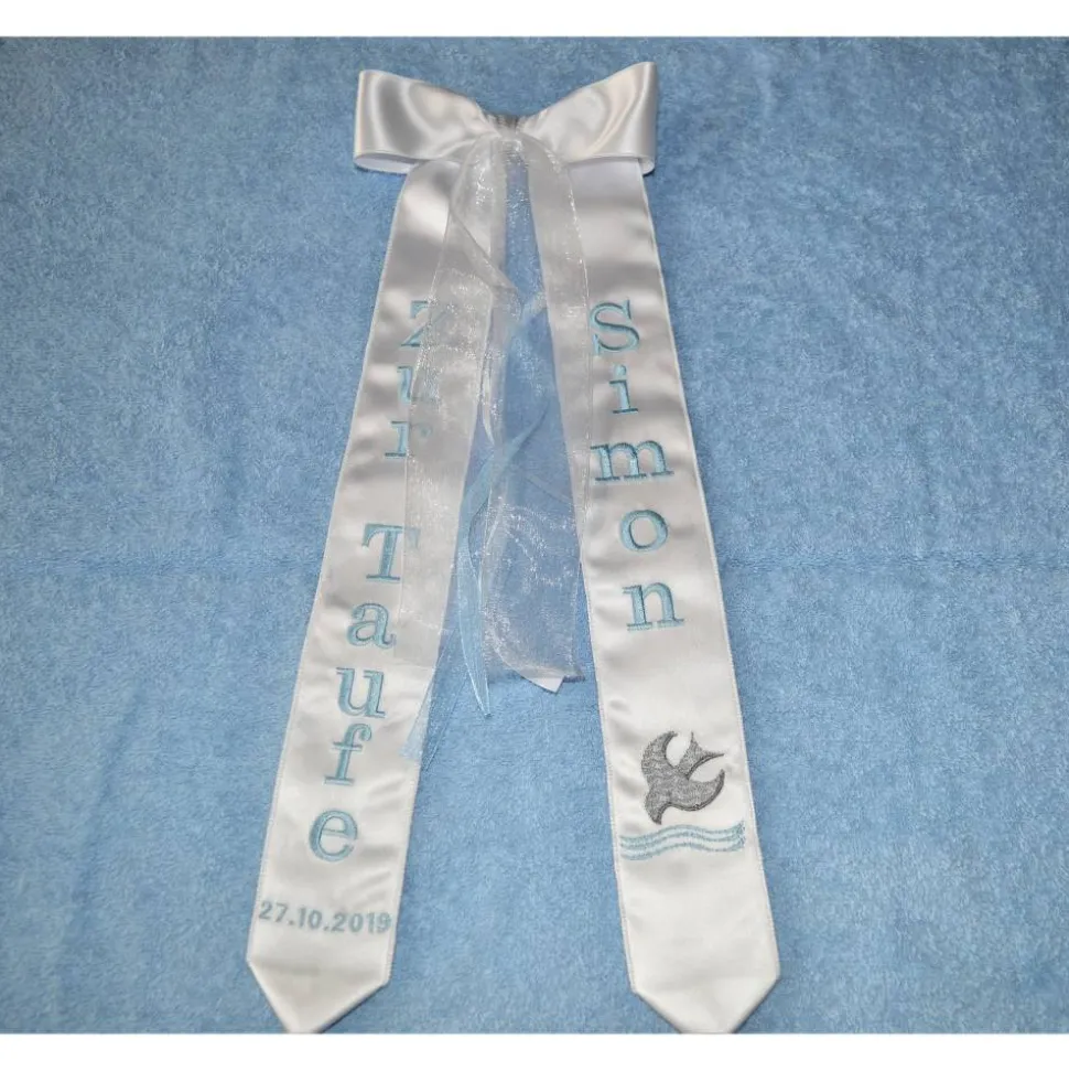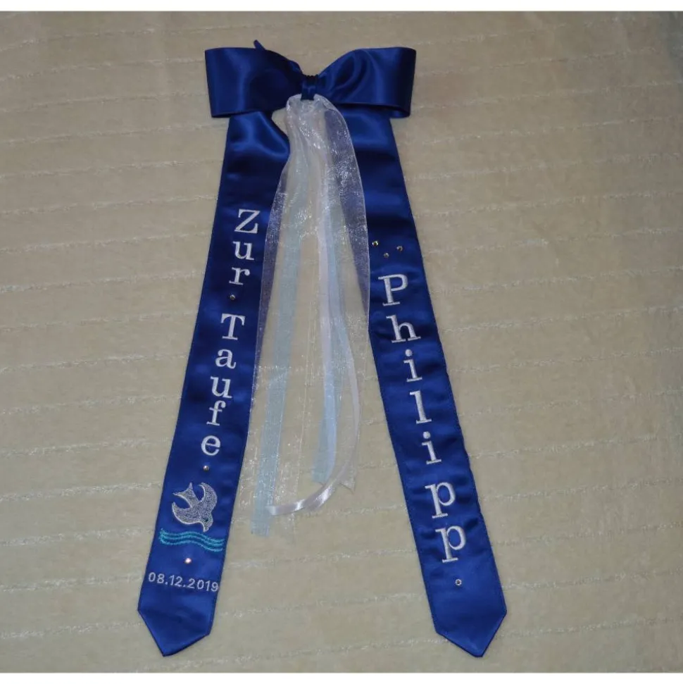 Da die Schleifen für jeden Kunden individuell gestickt werden, kann ich Ihre Wünsche berücksichtigen.