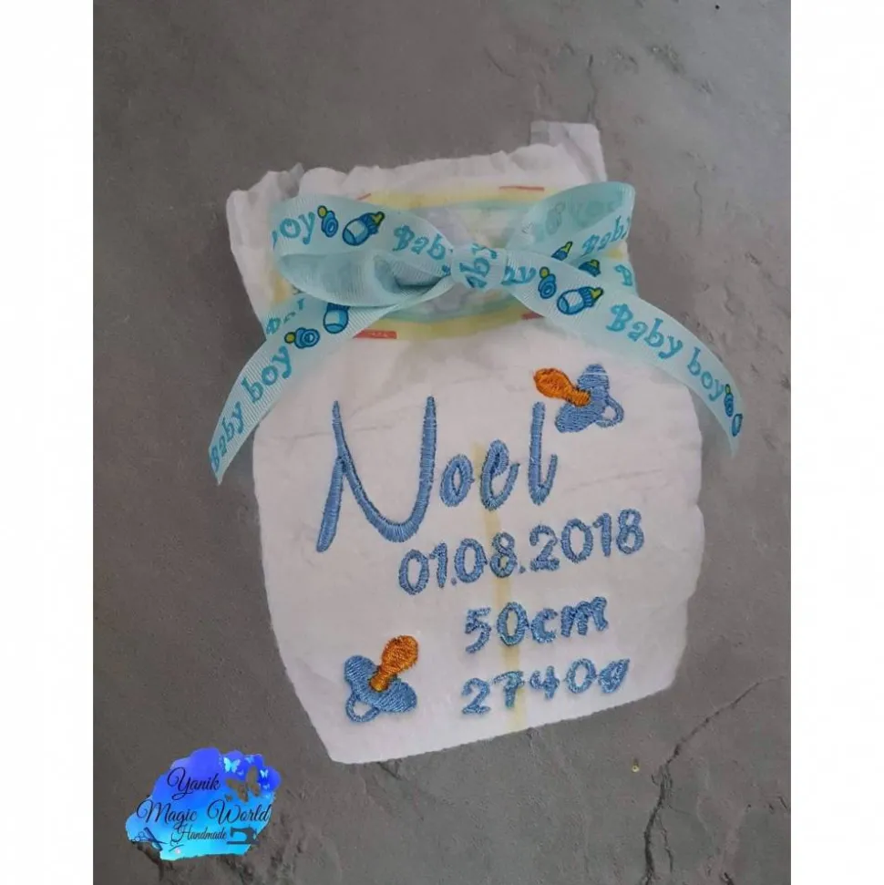 Bestickte Windel mit Geburtsdaten oder Spruch