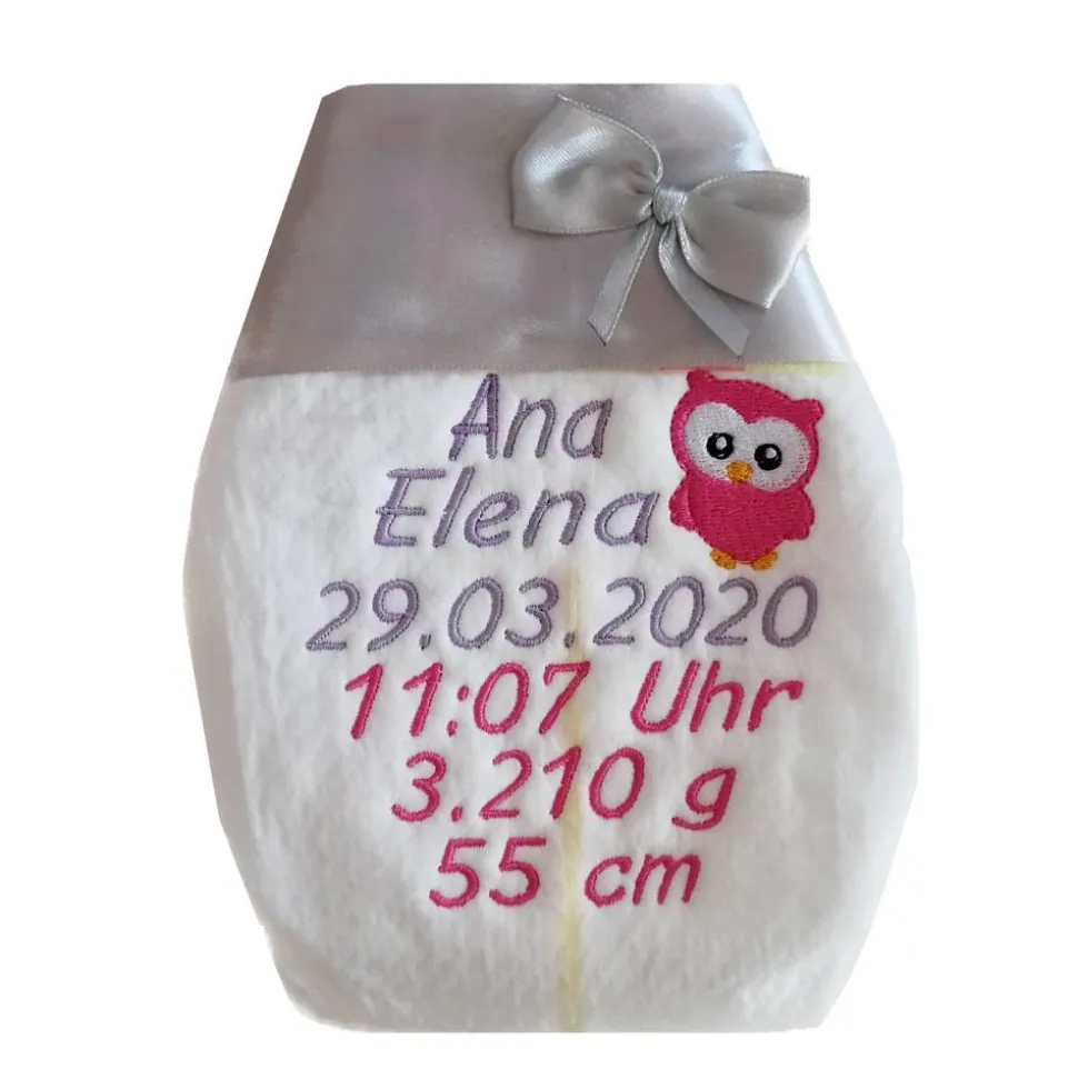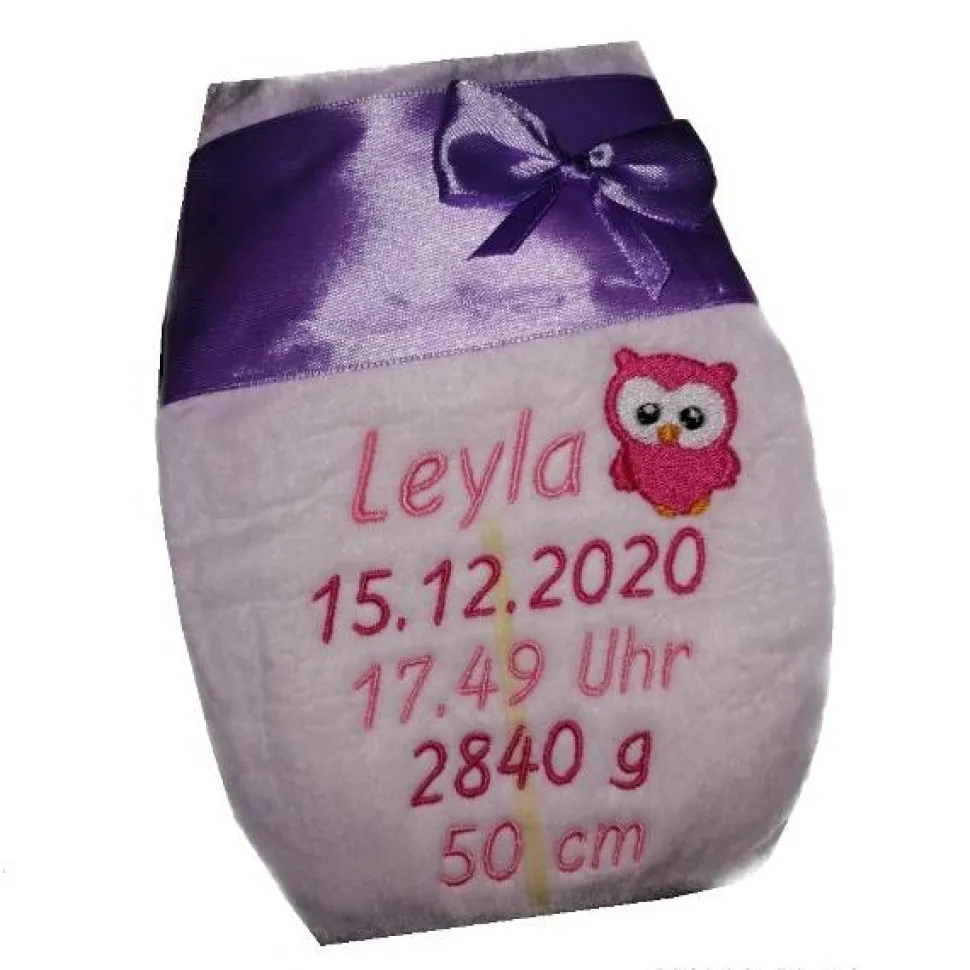 Bitte beachten Sie, das die Windel nur begrenzten Platz für eine Stickerei bietet, der Name sollte nicht allzu lang sein.