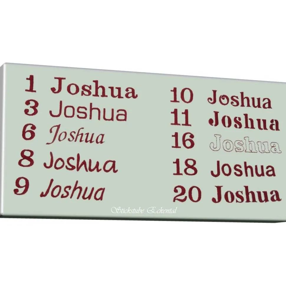 Optimal passend für ca. bis zu 8 Buchstaben, Doppelnamen können untereinander gestickt werden.
