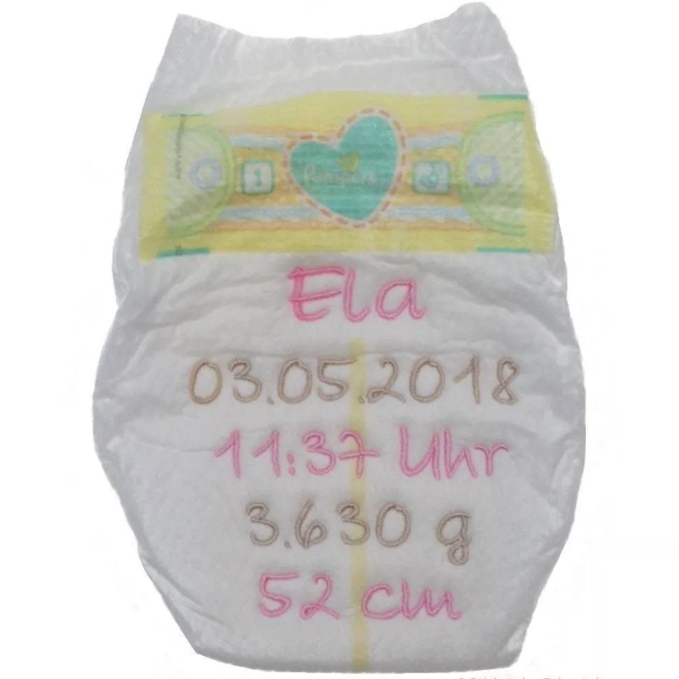 Dieses Produkt steht in keiner Verbindung mit Procter & Gamble. Procter & Gamble übernimmt keine Haftung für die bestickten Windeln.