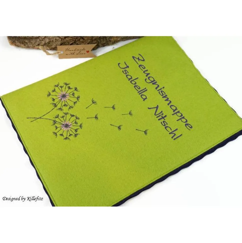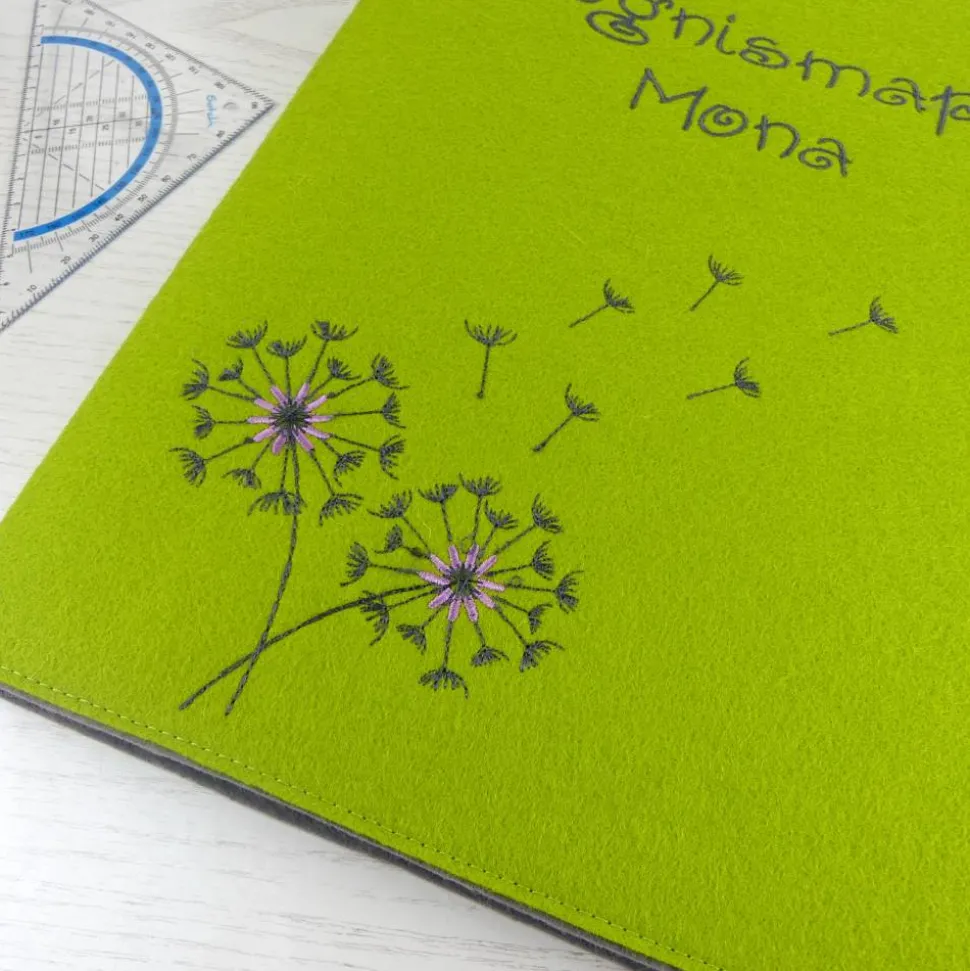 Diese wunderschöne Zeugnismappe wird liebevoll nach deinen Wünschen angefertigt und überzeugt durch hochwertiges Material: außen und innen Filz (80% Wolle, 20% Synthetik). Das Design mit aufwendig gestickter Pusteblume und dem Namen des Kindes macht jedes Stück zu einem einzigartigen Unikat und garantiert bleibende Erinnerungen an den Schulanfang.