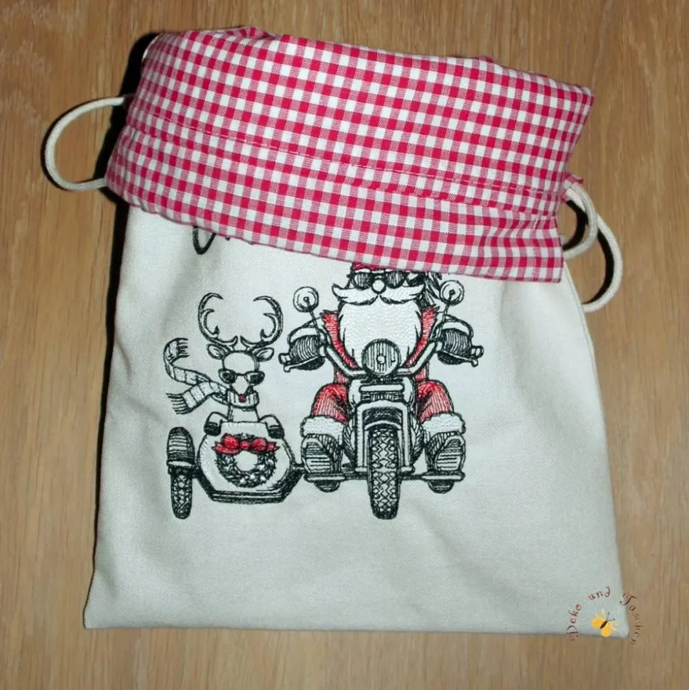 Verschiedene Stickmotive stehen zur Auswahl, siehe Foto. Die Motive werden mit dem Schriftzug „Merry Christmas“ kombiniert. Wünschen Sie einen anderen Text, geben Sie diesen bitte an.