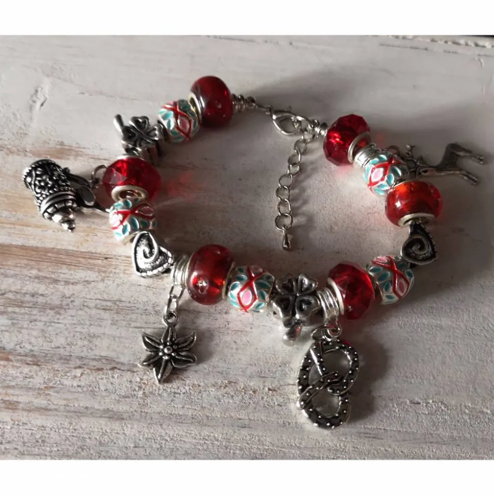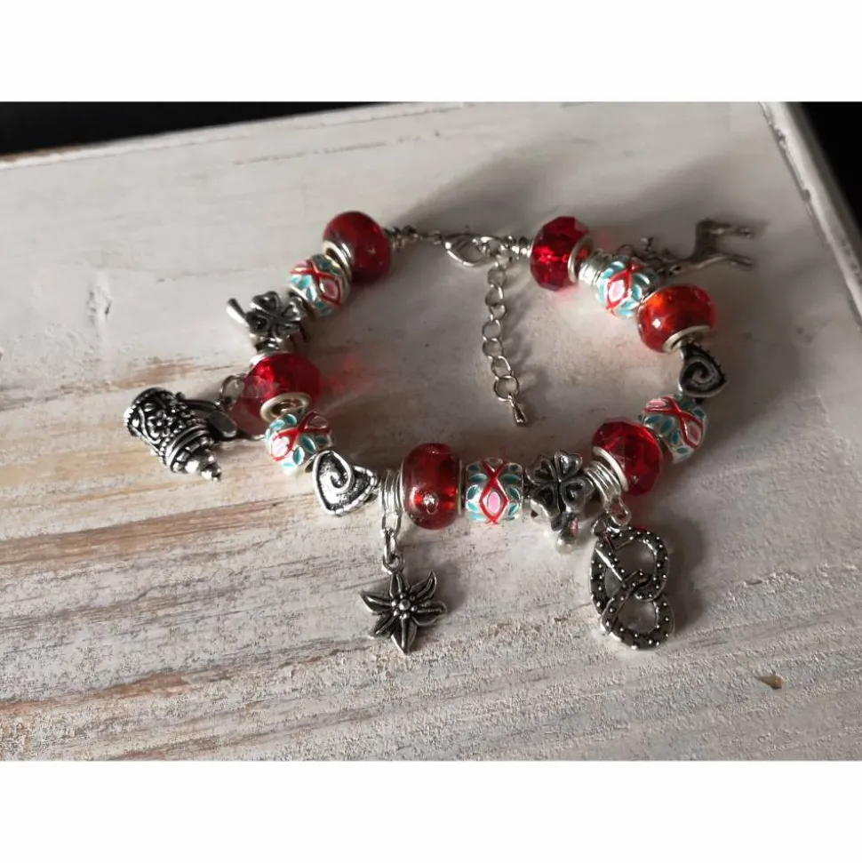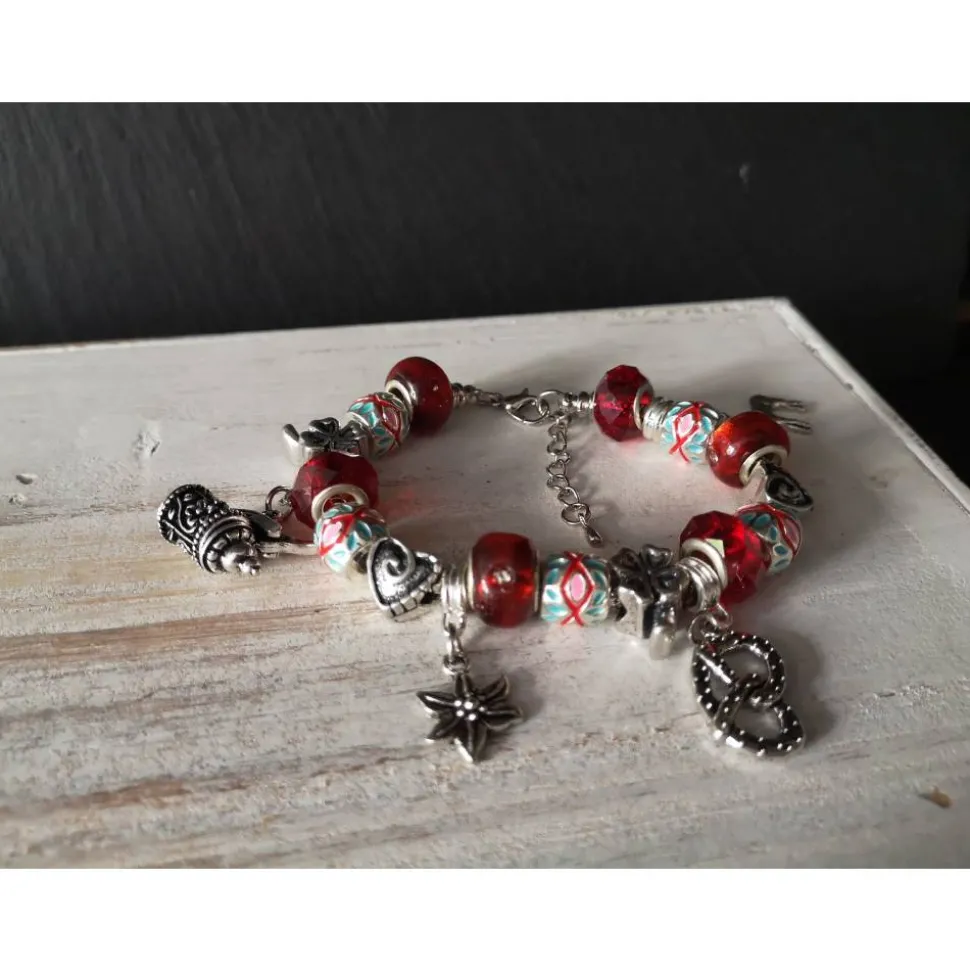Farbe des Armbandes: silber-rot-türkis