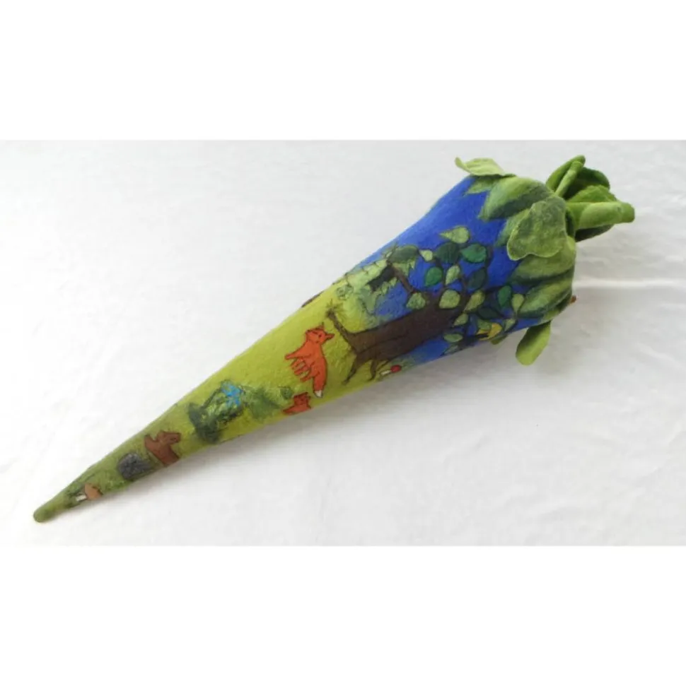 Erlebe die Einschulung mit der einzigartigen Bilderbuch-Schultüte „Nachts im Wald“ aus Filz! Diese liebevoll handgefilzte Zuckertütenhülle begeistert Jungen und Mädchen, die den Zauber des Waldes lieben. Wie ein Bilderbuch erzählt sie vom nächtlichen Leben im Wald: Füchse schleichen durchs Gras, Eulen rufen, Wildschwein und weitere Tiere warten darauf, entdeckt zu werden.