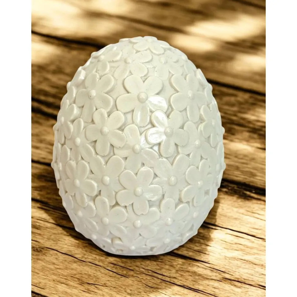 Große Osterei Dekofigur mit vielen kleinen Blümchen.