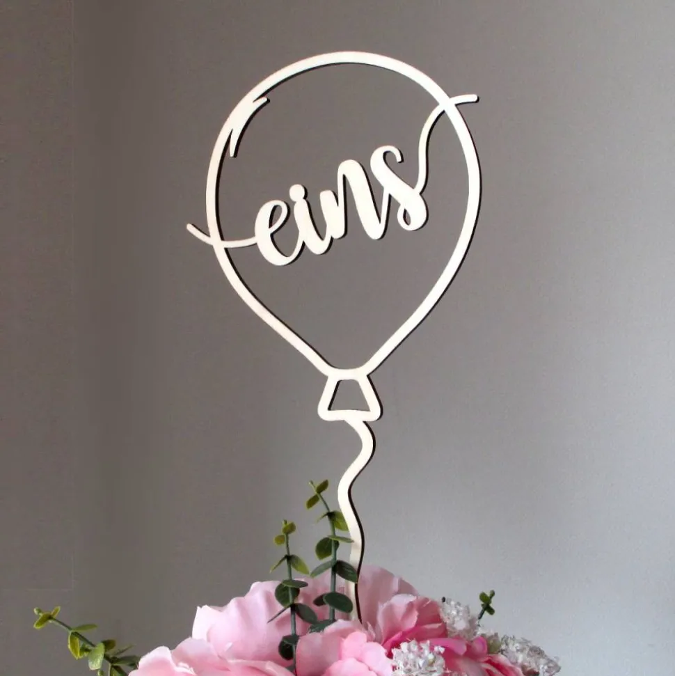 Blumen- / Tortentopper Geburtstagsballon aus Holz für Kindergeburtstage