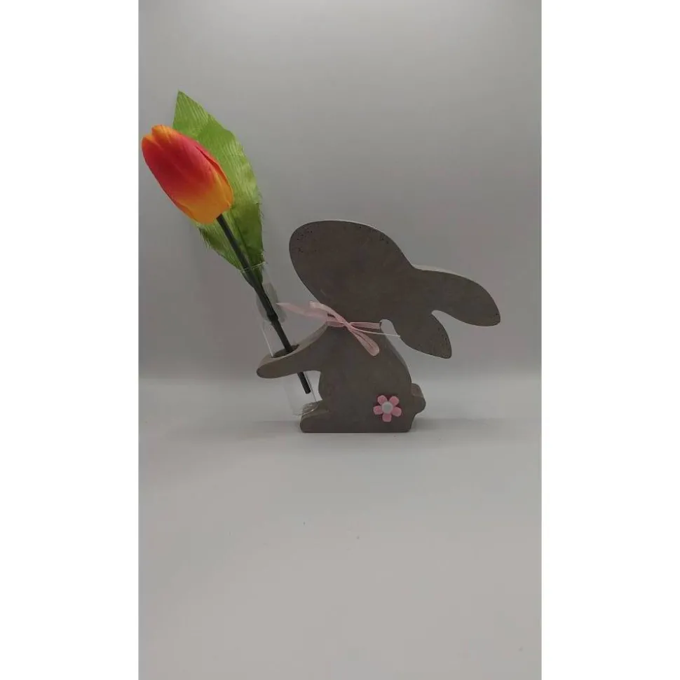 Dieses entzückende Blumenhasi zaubert in jedes Gesicht ein wunderschönes Lächeln. Es hält in seinen Pfoten eine kleine Vase mit einem Blumengruß..
