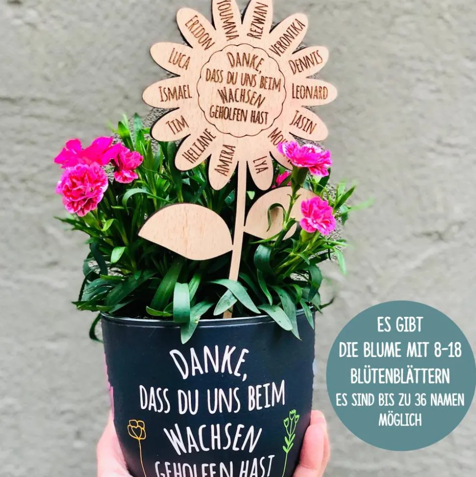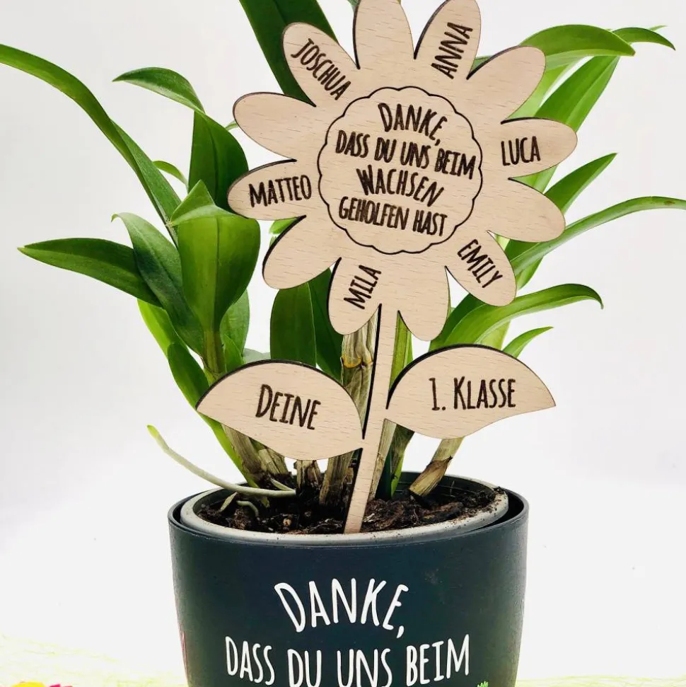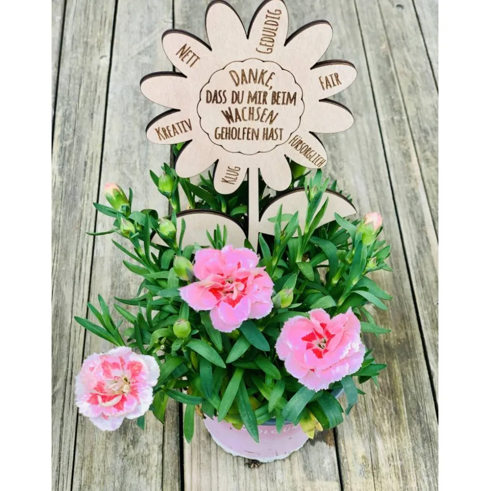 Mit unserem Blumenstecker aus Holz machst du garantiert nichts falsch – sei es für Lehrer, Erzieher, Trainer oder einfach nur als liebevolles Geschenk an Freunde oder Familie.