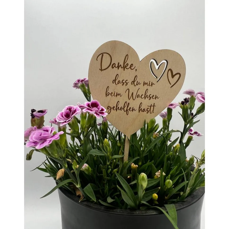 Verschenke einen personalisierten Blumenstecker aus Holz als unvergessliches Abschiedsgeschenk für Erzieher, Lehrer oder Tagesmütter!