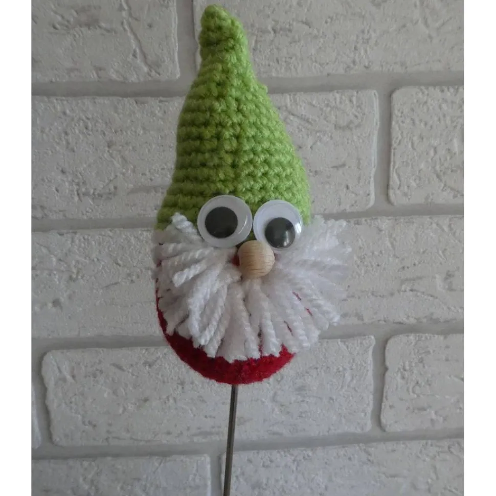 Der Stecker besteht aus einem, mit Wolle, umhäkelten Styroporei. Der Stab ist aus Metall