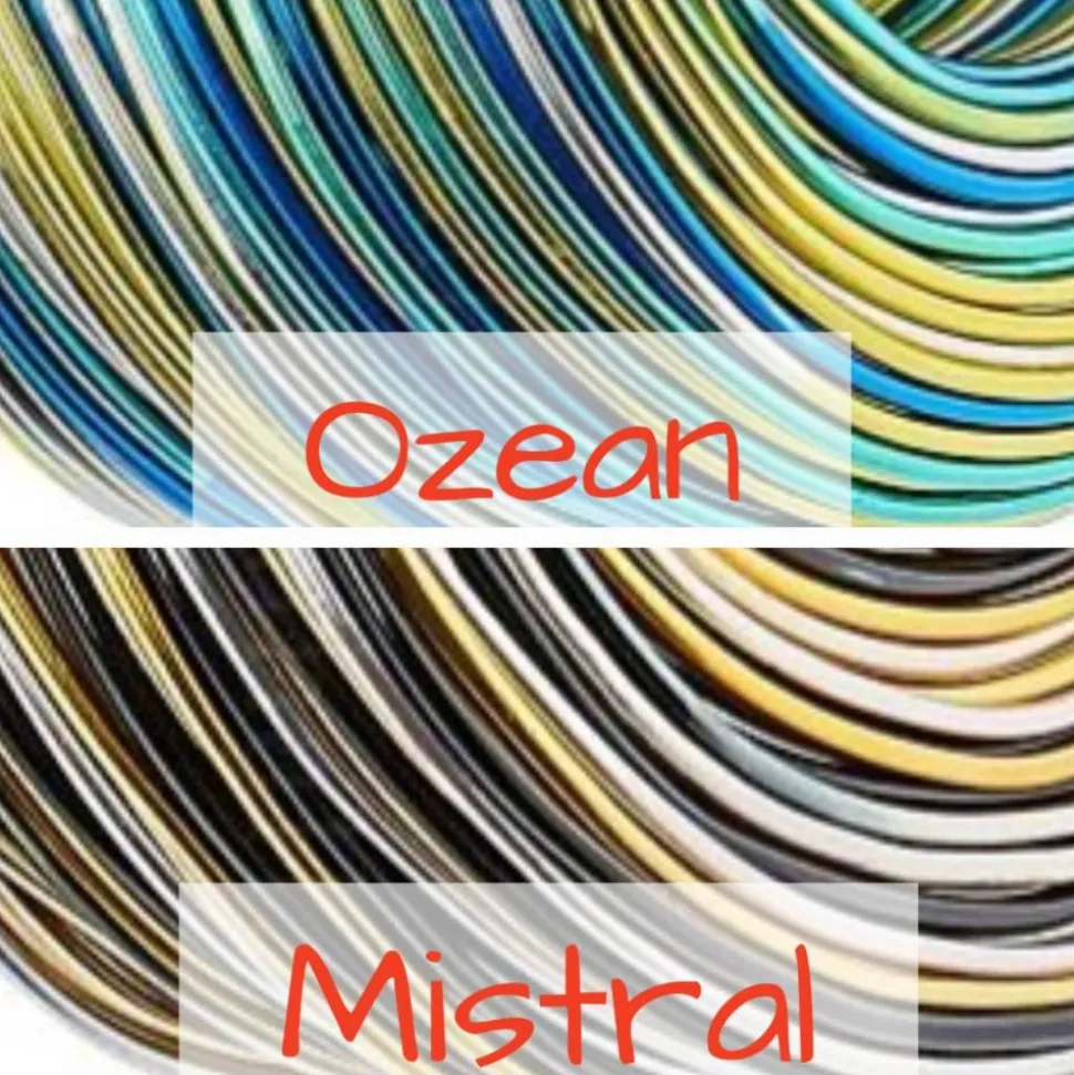 Gesamthöhe ca. 14-15 cm. Die Blumen gibt es in den Faben „Ozean“ und „Mistral“, der Draht hat einen schönen Farbverlauf, wodurch jedes Teil einzigartig ist..