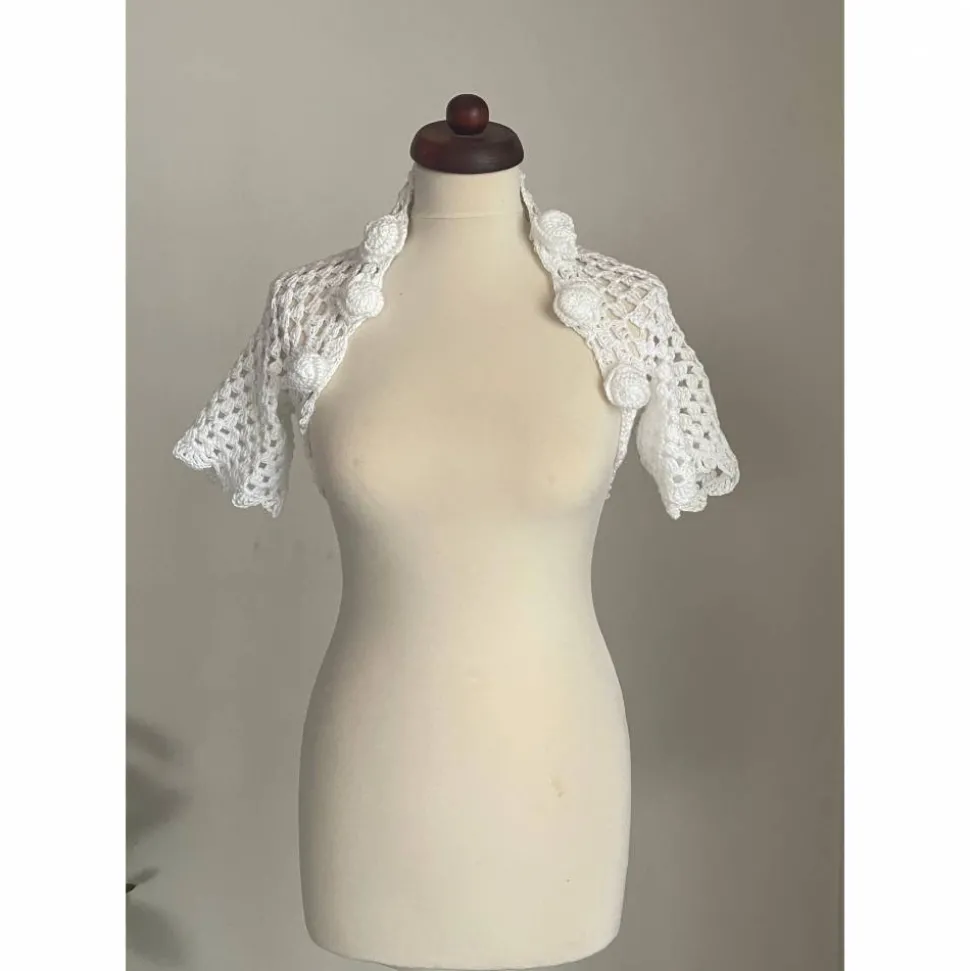 Sehr schickes Bolero Jäckchen in weiss.Gehäkelt ,Handarbeit.Größe 36/38. Bei weiteren Größen oder Farben einfach anschreiben.Material 100% Baumwolle.