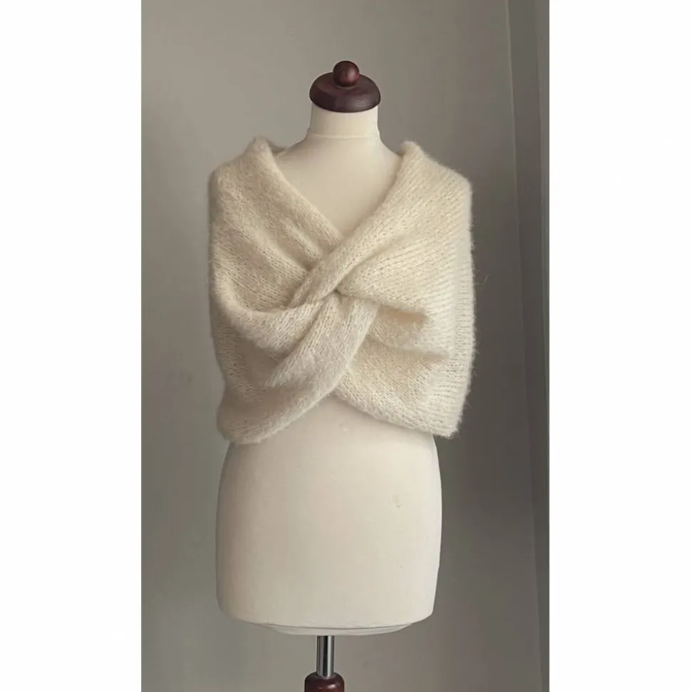 Praktische und elegante Stola in creme.Wolle: 77% Alpaka,23%Seide. Die Wolle ist wunderbar kuschlig und weich. Sehr sehr fein gestrickt und leicht. Diese wunderschöne Stola wird einfach um die Schulter gelegt. Passt sich sehr gut an folgende Größen an: XS/S/M/L. Bei großen Größen schreibt mich bitte davor an.