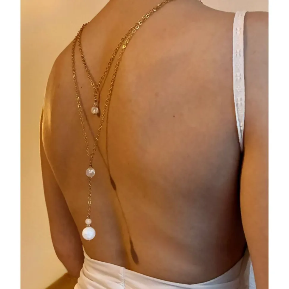 Brautschmuck-Set aus Bergkristall: Rückenkette, Armband & Ohrringe – vergoldeter Edelstahl, individualisierbar