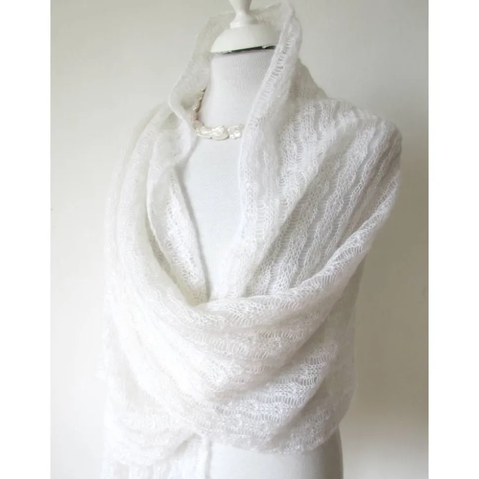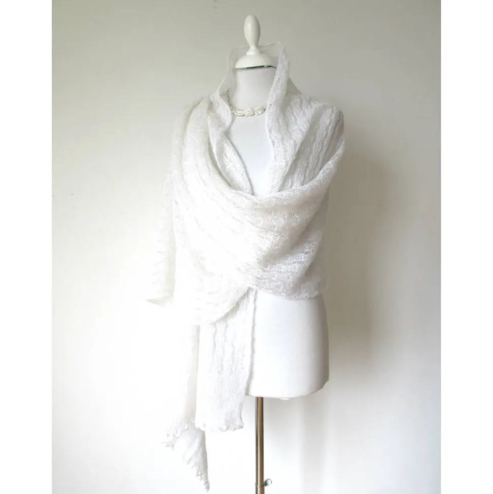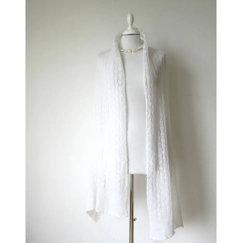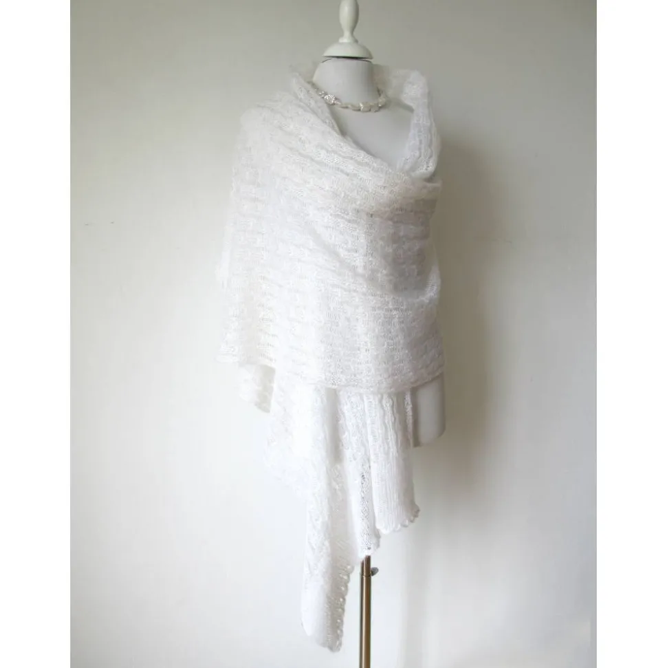 Lace-artig gestrickte Hochzeits- und Brautstola aus italienischem Premium-Garn in Weiß.