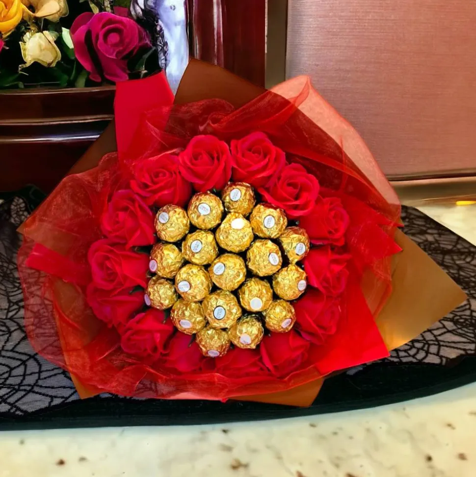 Unser exklusiver Hochzeitsstrauß, gefertigt aus köstlichen Ferrero Rocher Pralinen und eleganten Seifenrosen, ist eine wahre Augenweide. Die handgefertigten roten Seifenrosen verleihen dem Strauß eine romantische Note, während die Ferrero Rocher Pralinen für einen Hauch von Luxus und Genuss sorgen. Dieser einzigartige Brautstrauß ist nicht nur eine atemberaubende Ergänzung zu Ihrer Hochzeit, sondern auch eine süße Überraschung für den Gaumen. Feiern Sie Ihren großen Tag mit diesem kunstvollen Meisterwerk, das Liebe und Genuss perfekt vereint. …………………………………………………………………………………………………………………………………………………………………………………………………………………………………………………………………………………………………………………………………………………………………………………………………………………………………………………………………………………………………………………………………………………………………………………………………………………………………………………………………………………………………………………………………………………………………………………………………………………………………………………………………………………………………………………………………………………………………………………………………………………